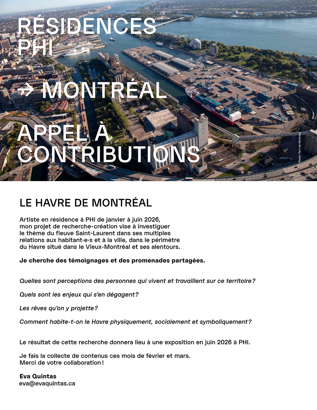 Résidence de recherche-création, PHI Montréal (janvier – juin 2026)